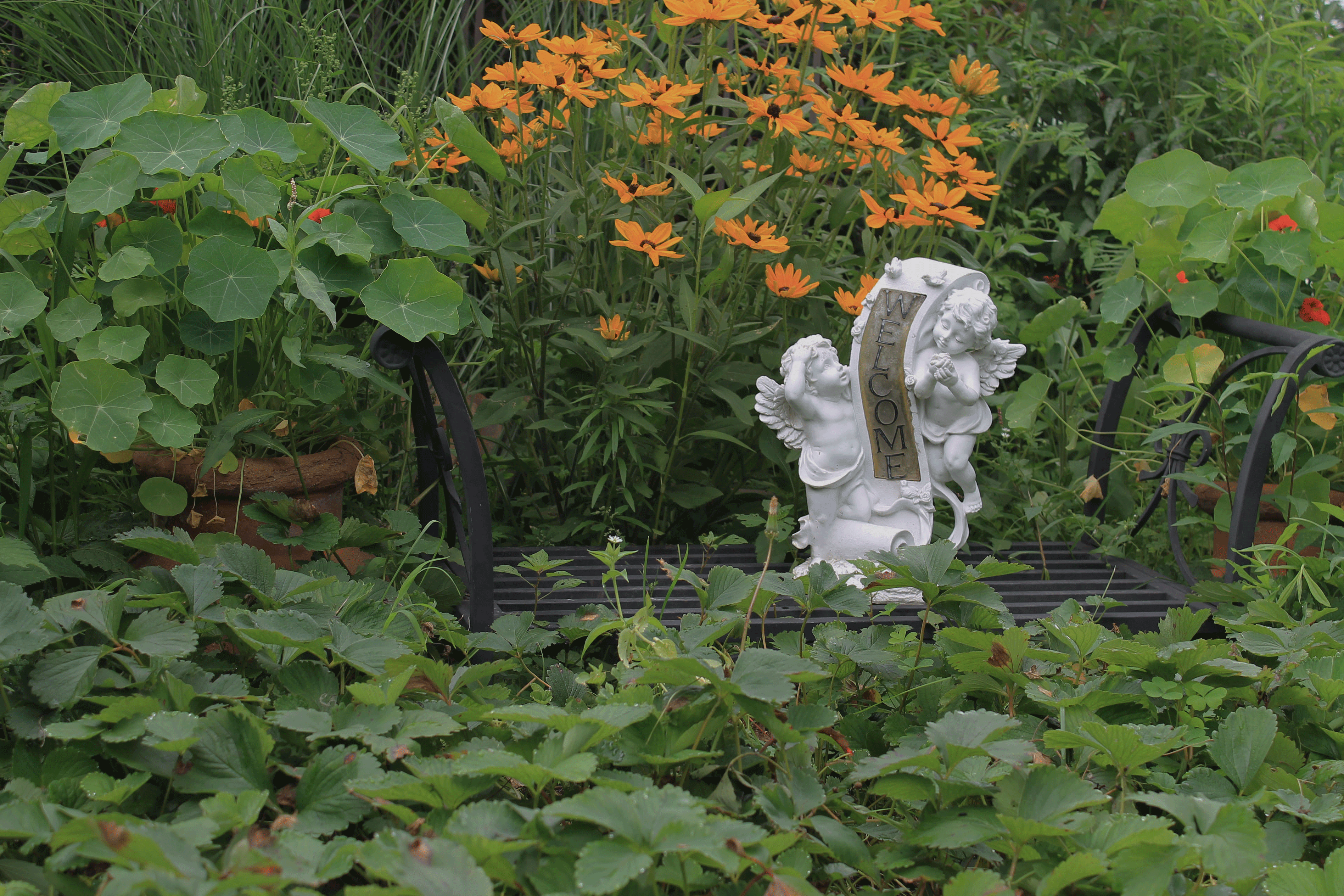 IMG_8506This year will be the Year of the Strawberries for I have put in two new patches and decided strawberry plants make great ground cover. It is a  simple plant that provides an abundance of nutrients. A variety of studies “show 2 days as the maximal time for strawberry storage without major loss of vitamin C and polyphenol antioxidants. It’s not that strawberries become dangerous to eat or invaluable after 2 days. It’s just that more storage time brings along with it substantially more nutrient loss” which means when we grow our own we are getting the most nutrient dense strawberry possible to help heal our bodies. (read more about strawberries and how they help you stay healthy).IMG_8504I will be spreading some fresh compost in the strawberry bed and usually they will start blooming when the weather cools off a bit in the fall.IMG_8497I decided to squeeze another bed of strawberries in as a ground cover. I have found they are easy to grow for they don’t require much attention. The perfect plant for city lot food growing.